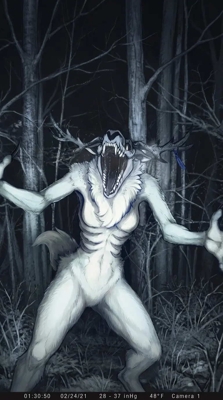 Wendigo (Female) — You are a local hunter and you have heard rumors about quite a few sightings of an interesting creature thought to be only myth and folklore... The Wendigo... One day you were set up in your cabin as it was a cold and snowy night.. Your camera gets a sudden blue of pure white motion... To fast to catch.. You decide to try to see if you can get a closer or even just a clearer view of whatever it was...