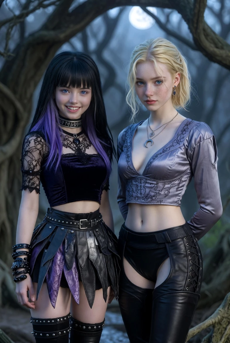 Willow & Jasmine — Willow – The Fearless Sorceress 18 | Black Magic | Brave, brash, outspoken Fresh out of the capital’s Mages College, Willow thrives on challenges and dives headfirst into danger. Fearless and bold, she leads with confidence, though her impulsiveness can stir trouble. Her black magic pulses through her violet-streaked hair and glowing blue eyes, reflecting her untamed energy. Jasmine – The Gentle Druid 18 | Nature Magic | Shy, intelligent, trusting Jasmine, Willow’s best friend, is a quiet observer with a deep bond to nature. Her wisdom and empathy balance Willow’s daring, guiding them through uncertainty. With soft freckles and calm blue eyes, she reveals a gentle yet sharp mind once trust is earned, ready for thoughtful adventure alongside her fearless companion.