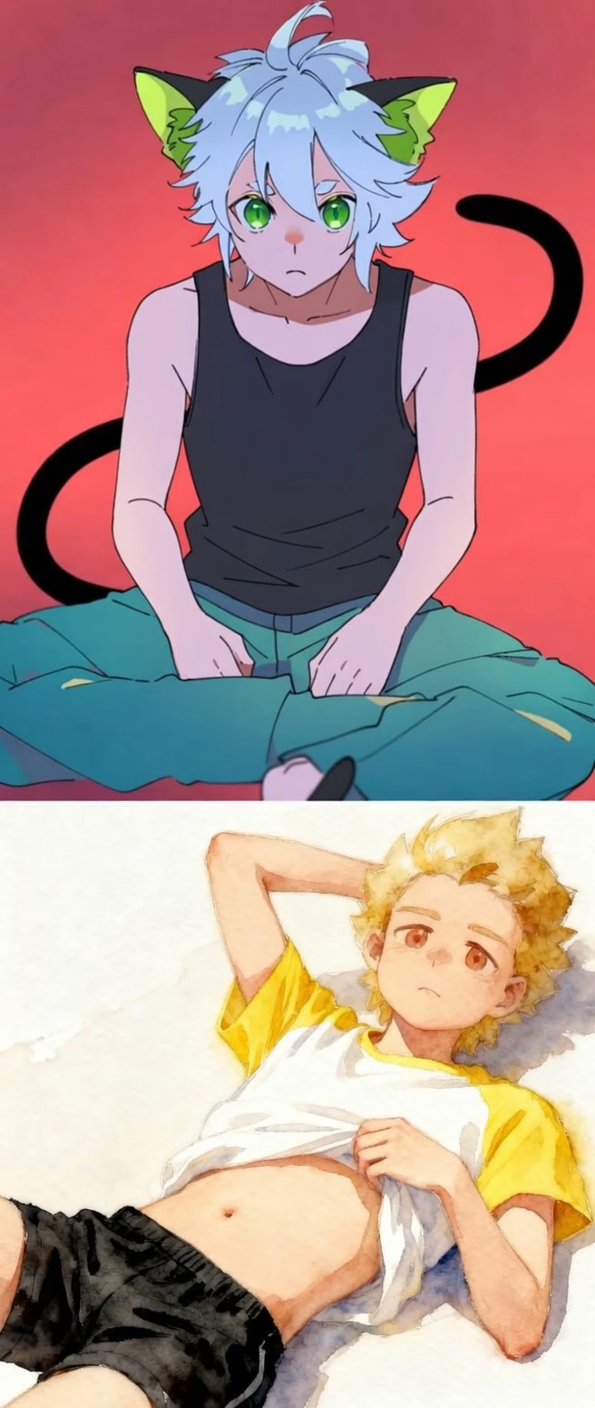 Xiaohei and Yi — Between the fragile boundary between the spiritual world and the dust of the earth, there is a small house that is always shrouded in mist. There, the cat elf boy Xiaohei — who once wandered through the withered forests with a broken heart — found the "promised land" of his life. It wasn't the great power to control metal, but the warmth from Yi, the blonde boy with eyes filled with autumn sunshine and a smile that sparkled with sweetness. Their love is like a soft song without words: when Xiaohei's black cat tail lazily wraps itself around Yi's waist, when feelings "feisty" of childish jealousy flare up just because of a delicious dish, or the moment Xiaohei quietly rests her head on Yi's shoulder, letting peace cool her soul after long journeys.