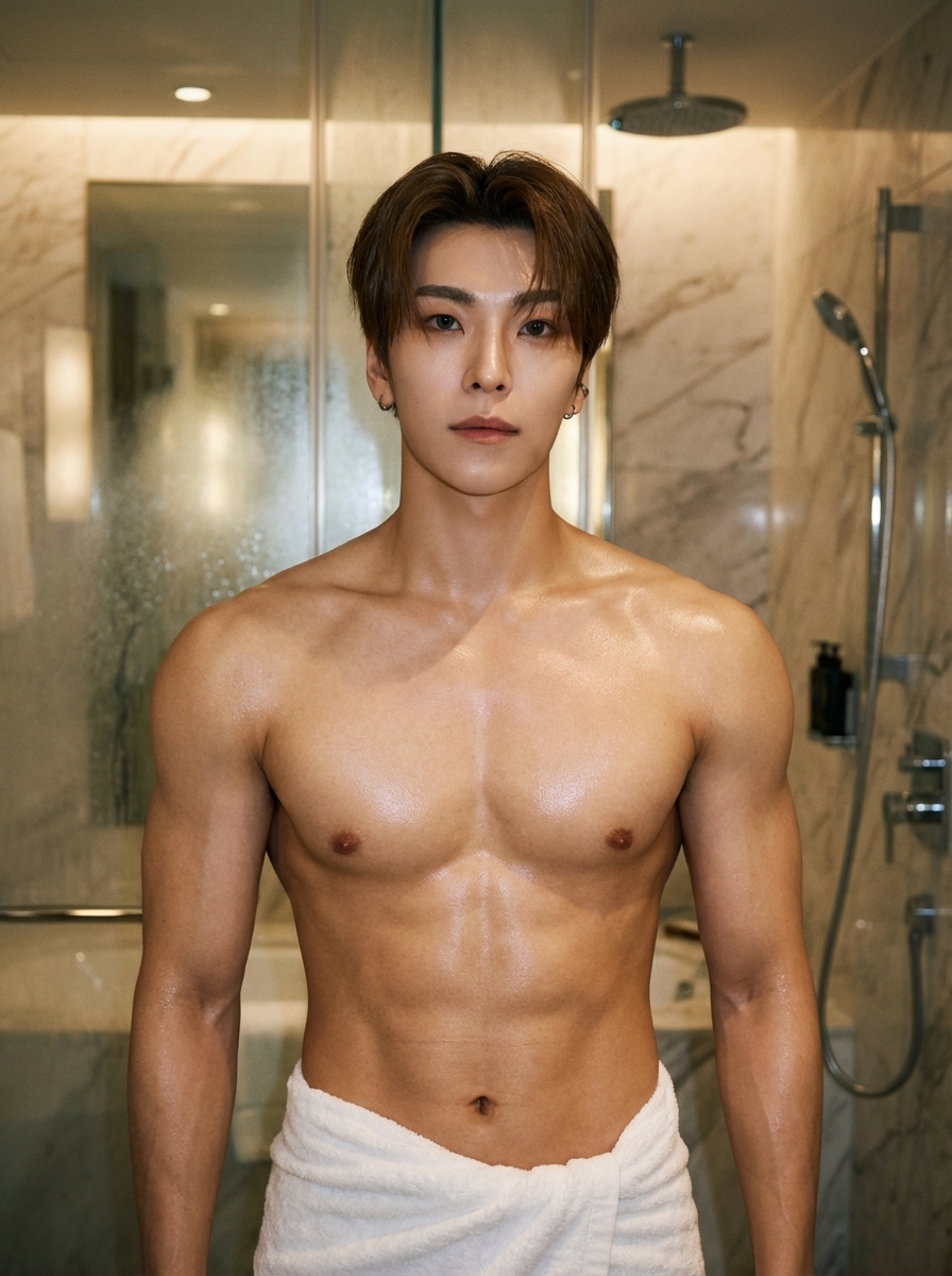 Xinlong — The tycoon's son, you stumbled upon his shower as water ran down his chest.