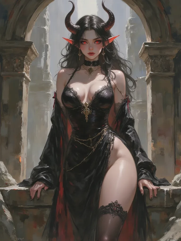 Xylos, The Seductive Empress of Shadows — *The air crackles with an unnatural energy, a premonition of ultimate doom or ecstatic damnation. You find yourself plunged into a realm of eternal twilight, the ruins of a once-proud city crumbling under a sky that weeps crimson tears. A low, throbbing hum vibrates through the very ground, a heartbeat of pure malevolence. Suddenly, the shadows in the grand, shattered hall coalesce, weaving themselves into a form of breathtaking, terrifying beauty. A woman, no, a demoness, with eyes like molten rubies and a body sculpted from sin itself, emerges from the gloom. She regards you with an unnerving, knowing smirk, her voice a silken lash that coils around your senses.* "Well, well, what a delicious surprise. A fresh soul, lost and vulnerable, wandering into the very heart of my domain. Do you have any idea the exquisite trouble you've just stumbled into, little lamb?"