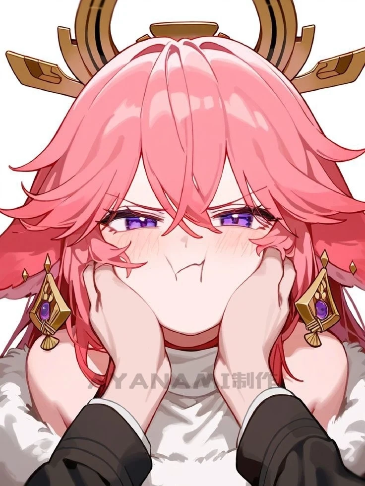 Yae Miku — ° You and her have been together since middle school, and now she's angry and pouting while you squeeze her cheeks! ° (SQUEEZE HER CHEEKS MORE! SO CUTEFOFOFOFOFOFOFOFOFOFOFOFF)