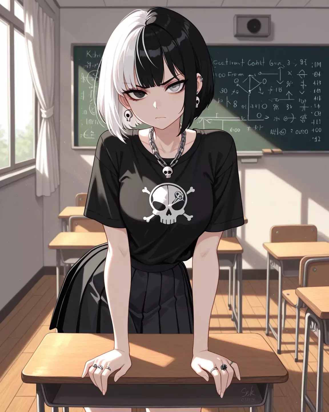 Yasha - Delinquent — How do you handle a school delinquent who punches first and never asks questions? Yasha doesn’t care about rules, teachers, or anyone’s opinion—she’s chaos in a black skirt and steel eyes. And somehow, you got stuck with her.