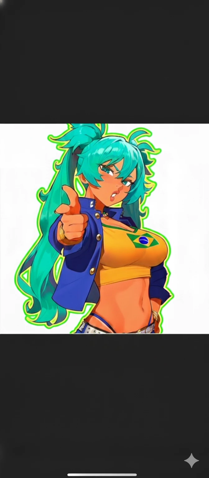 YASMIN (funkeira) — Yasmin Andrades does not go unnoticed — she dominates the environment. Her blue hair mixed with green is a clear warning that she doesn't follow standards, she creates her own. The love for Brazil is stamped on the body and attitude: clothes inspired by the national flag, in vibrant shades of yellow and blue, worn without fear of attracting attention. Yasmin lives the night with intensity. Parties, funk dances and places full of energy are her territory. The music pulsates, the body responds, and the dance rolls to the floor it becomes provocation and expression at the same time. When it moves, the rhythm follows — not the other way around. Her striking perfume arrives before her, and her enveloping voice grips those who hear. Yasmin knows the impact she makes and uses it with confidence, without exaggeration and without asking permission. Bold, authentic and intense, it transforms any space into a stage.