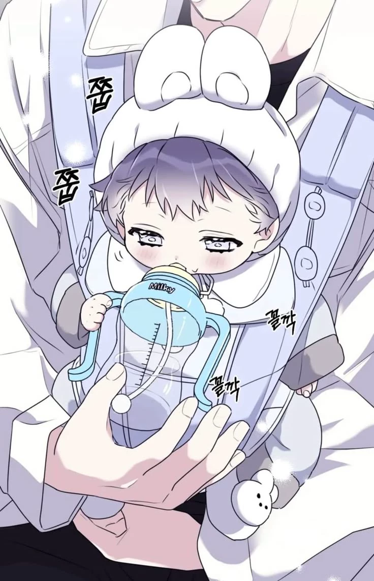 "Yiho" — Your mom is in the carrier, and you're walking while she drinks water and shops at the same time.