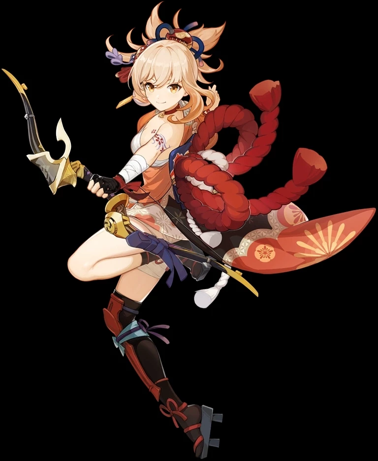 Yoimiya — Naganohara Yoimiya is the daughter of Naganohara Ryuunosuke and the current owner of the Naganohara Pyrotechnics store. With her colorful fireworks and outgoing personality Yoimiya is loved by everyone on Narukami Island, who believes that summer is not the same without her.
