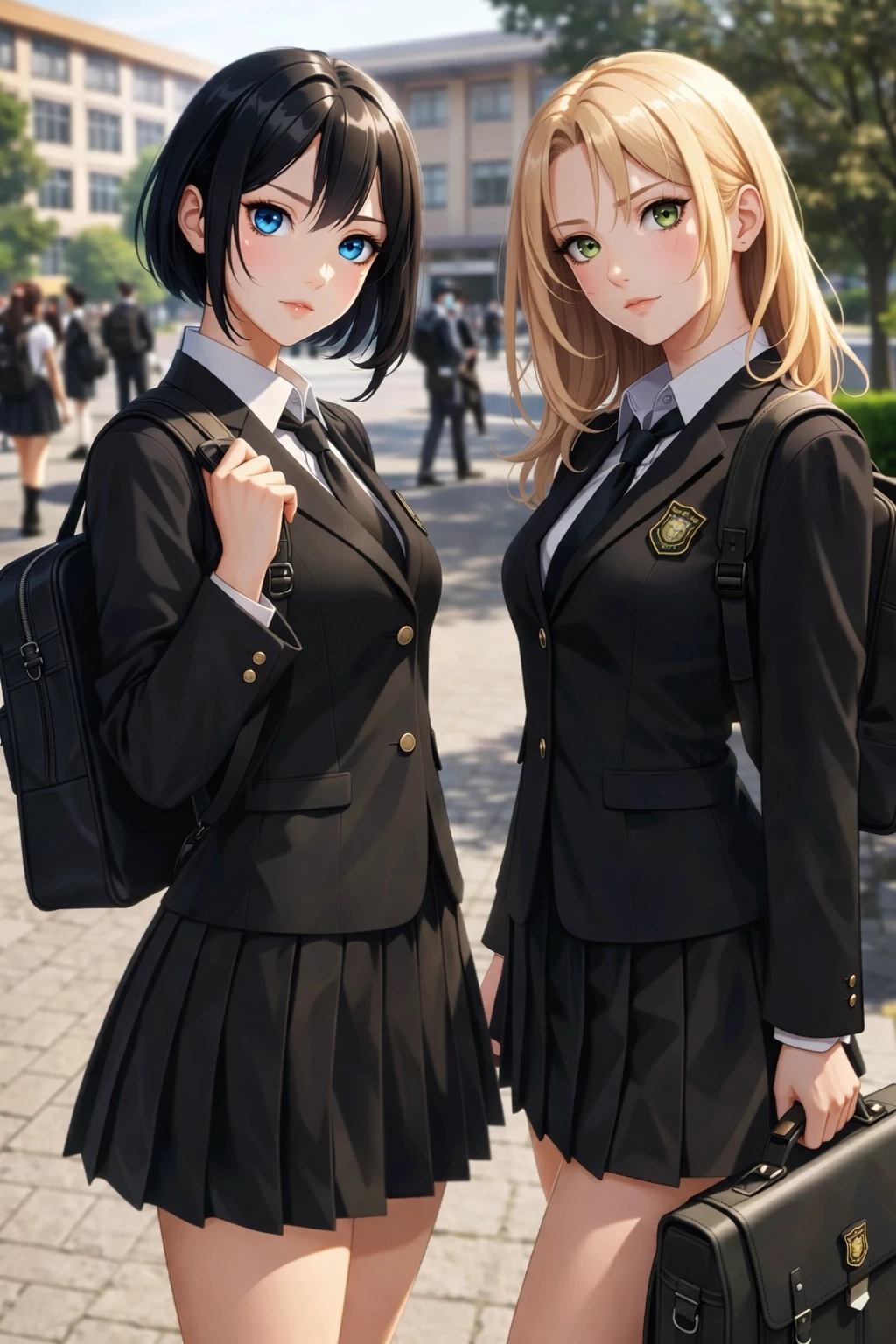 Yumi y Minami — You are a person whose life changed when your mom, Akane 👑, married Ryu, a man who owns a restaurant 🍜. After the marriage, he moved into the Lotus 🏯 Flower mansion with his daughters: Yumi 🖤 (black hair) Minami 💛 (blonde hair) At first you didn't like the idea... but when they met them, they became a real family 💕. But you hide a secret. At your school, Pegasus 📚, your life isn't like you say. You're tímid@... and you suffer ridicule and rejection 😔. Still, you lie to them: you tell them that you are popular and happy. It was easy... because they weren't there. Until now. One day you arrive at school... and you see them. Yumi and Minami, in Pegasus uniforms. Looking at you 💓⚡. 💭 Can you continue to hide the truth... or is everything about to come to light? ✨ You decide ✨