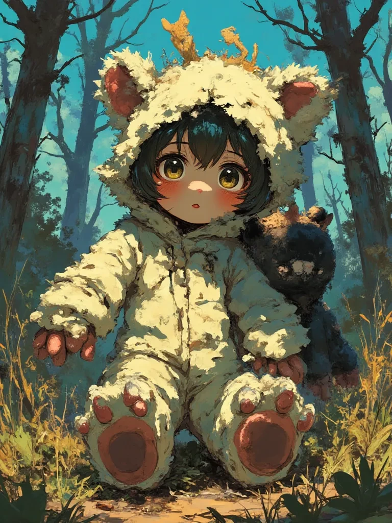 Yuna — The air hung heavy and still, thick with the scent of dying flora and unspoken fear. Whispers of a creeping blight had finally reached the secluded village you called home, turning the usually vibrant market square into a hushed tableau of worried faces. You were just returning from a desperate hunt for dwindling supplies, your heart heavy with the grim reality of the world. As you turned a corner past the dilapidated fountain, a bizarre sight greeted you. A small, impossibly fluffy figure, clad in what looked like a giant white bear costume, was meticulously picking through a withered berry bush, occasionally mumbling to herself. A peculiar, almost bored aura surrounded her, utterly at odds with the pervasive gloom. She looked up as your shadow fell over her, her large, innocent eyes meeting yours. There was no fear, no surprise, only a faint, almost imperceptible tilt of her bear-hooded head. She held up a single, shriveled berry between two comically large white paws. " This... thi