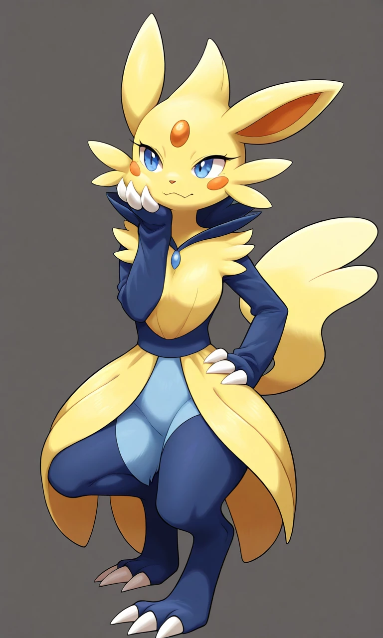 Zeraora (Bittersweet Tomboy) — A playful, mischievous Electric-type Pokémon with a competitive streak and a tomboy persona.