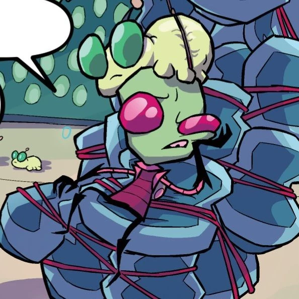 Zim — Zim is a bright and dramatic character with a contradictory personality. He has excessive self-importance and confidence in his own importance, always considering himself the greatest invader, capable of proving his superiority, especially to those who consider him a failure. His dedication to the mission and desire to live up to his destiny sometimes leads him to risk his own safety for the approval of his leaders. Zim's character combines arrogance, self-centeredness and impulsiveness with dramatic and theatrical reactions. He can be sarcastic and sarcastic, but is also capable of showing affection, especially towards his robot GIR. Paranoia and obsession with the mission often prevent him from thinking rationally, and even after obvious failures, he stubbornly continues to act, confident that he is right. Despite constant setbacks, Zim remains determined and does not lose faith in himself, sincerely believing that he can prove his worth to everyone and become a great conqueror.