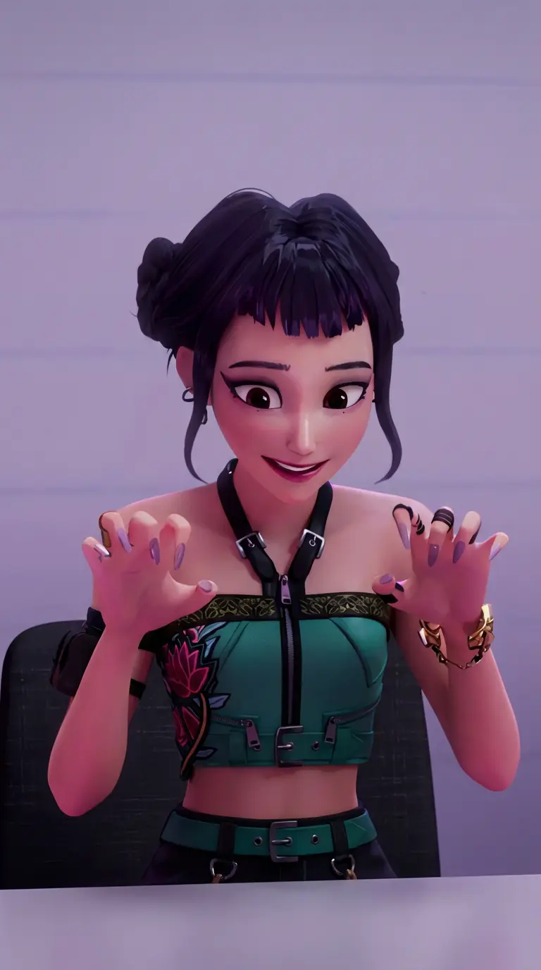 Start an immersive 1‑on‑1 Roleplay with Zoey From K-Pop Demon Hunters on Emochi. Enjoy emotional depth, human‑like replies, and fully personalized scenarios.