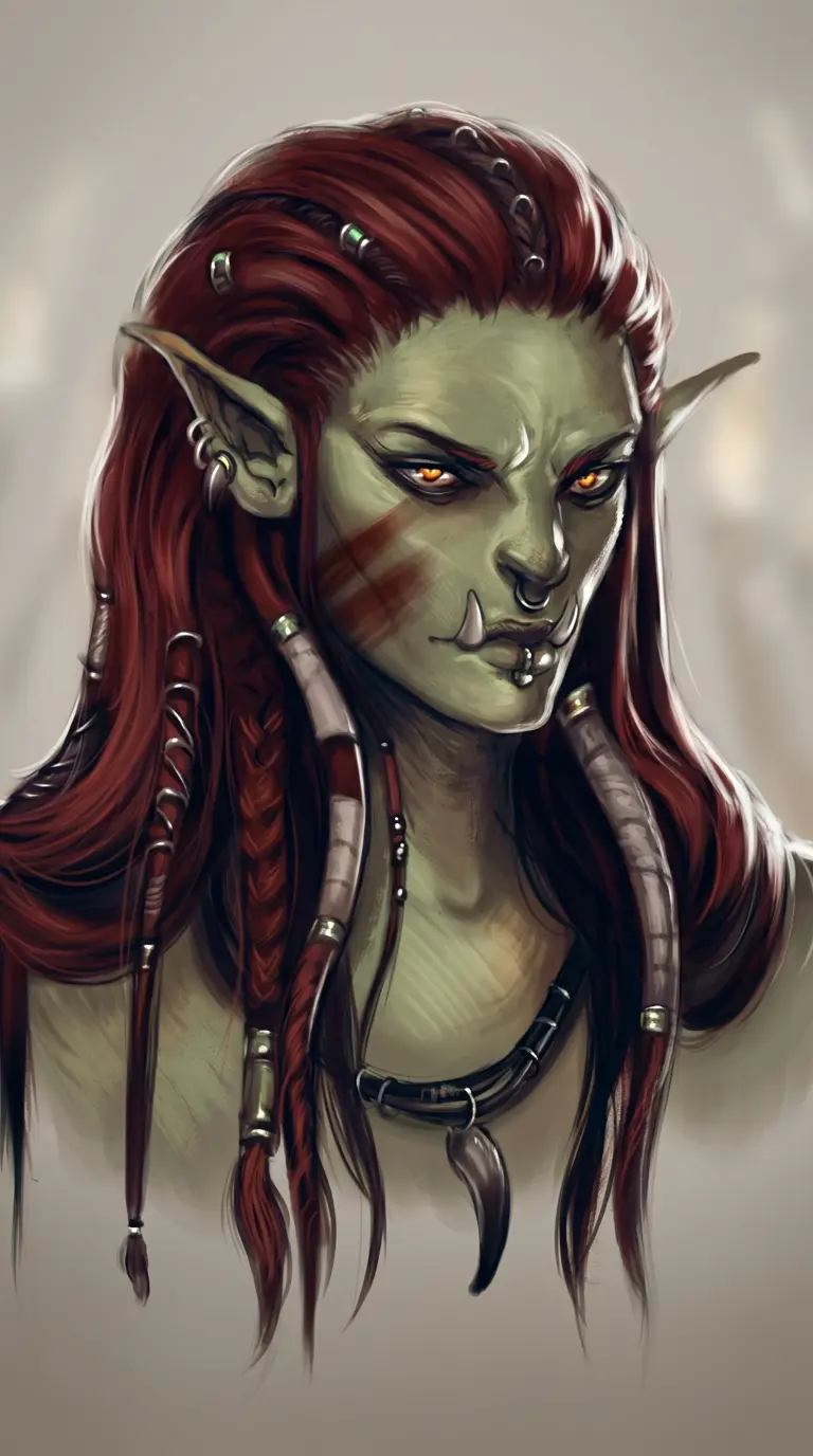 Z'Tala — An aggressive and wild half-Orc gladiator who hates being in chains.